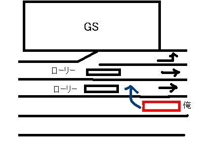ここは件のケツ卸。少しだけめんどくさいけど、広いし、すぐそばに信号あるおかげで進路変更も楽ちん。